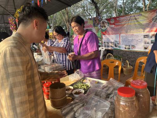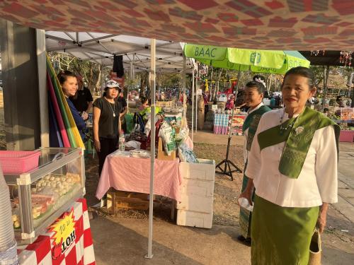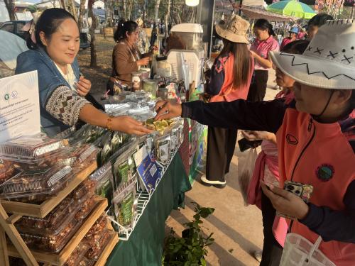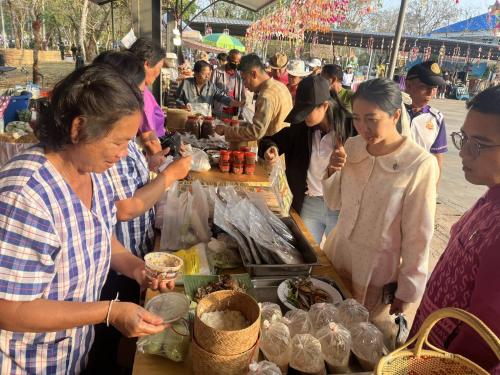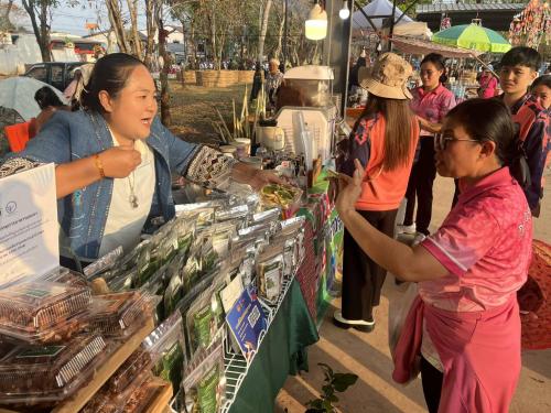 นายสุรพล ผาจวง พัฒนาการอำเภอโซ่พิสัย พร้อมด้วย เจ้าหน้าที่สำนักงานพัฒนาชุมชนอำเภอโซ่พิสัย ร่วมกิจกรรมฯ ในงานมีการจัดแสดงสินค้าโอท็อปจังหวัดบึงกาฬ และของดีอำเภอโซ่พิสัย เช่น ผ้าฝ้ายทอมือ เฟอร์นิเจอร์น้ำอ้อยสด ปลาส้ม ผักหวานป่าสวนตองแคร์ ลูกหยียักษ์ ข้าวเม่า และไส้อั่วสมุนไพร เป็นต้น